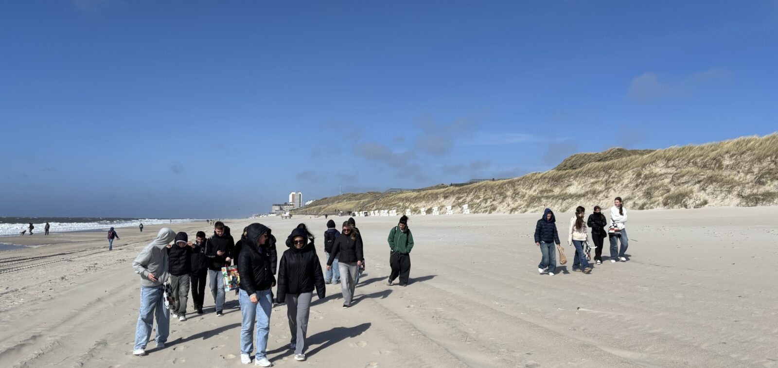 Auch am fünften Tag wartete ein vielfältiges Programm auf die Schüler:innen der Klasse 9c auf ihrer Studienfahrt. Die Klasse erkundete den Nordteil der Insel. Dazu gehörte die Stadt Keitum, ein idyllisches Dorf, das früher als Herz der Insel galt. Heute dient es als ruhiger Kontrast zum trubeligen Westerland. Schöne Reetdachhäuser und Kapitänshäuser wurden besichtigt. Im Anschluss daran erforschte die Klasse die Heide- und Dünenlandschaft rund um den Ellenbogen. Besonderes Augenmerk wurde auf die Pflanzen der Dünen und die Wanderdünen gelegt. Ein kurzer Spaziergang durch das touristisch auflebende List und die anschließende Fahrt nach Westerland rundeten die Tour ab. Es folgte ein kurzer Stadtbummel und die Besichtigung der Strandpromenade in Westerland. Im Anschluss daran machte die Klasse einen Fußmarsch am Strand von Westerland zurück zur Jugendherberge. Einige Schüler genossen mit den Lehrenden noch die Abendstimmung am Meer. Am Abend überraschten die Schüler:innen die Lehrenden mit einer „Kinderbildraterunde“.